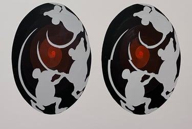 Heather Lowe has painted stereo imagery on and off since the year 2000. Here are some examples of her stereo paintings. They are painted with gouache or acrylic on mounted board. A new canvas painting done this year (2026) will be exhibited in May.